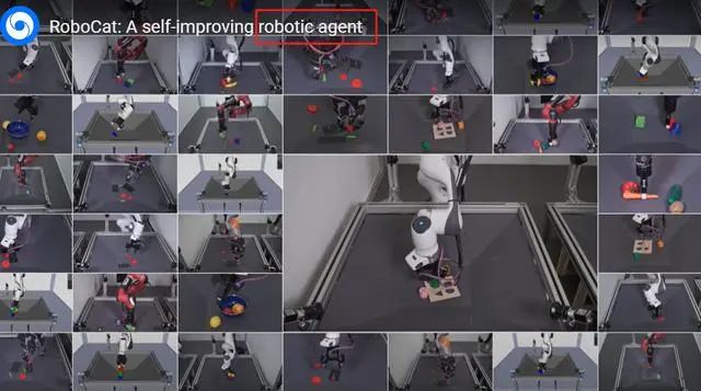 DeepMind称,RoboCat是全球第一个可以解决和适应多种任务的机器人AI智能体,并且它可以在各类真实的机器人产品上完成这些任务,“RoboCat的快速学习能力减少了对人类监督训练的需求,是朝着创建通用机器人迈出的重要一步。”